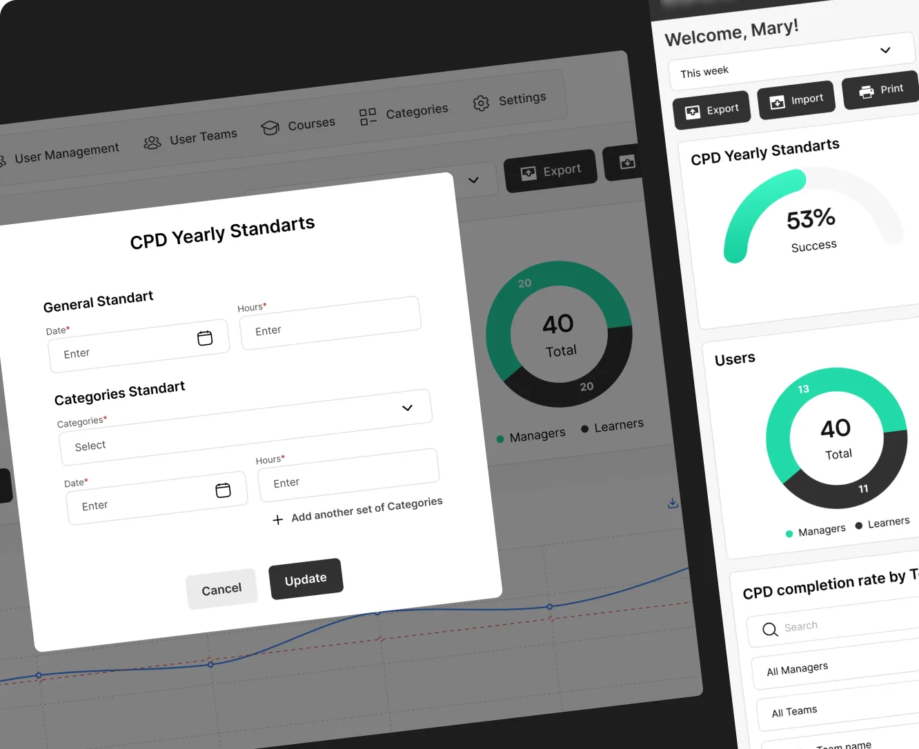 Set CPD hour requirements by role, team, or individual annually.