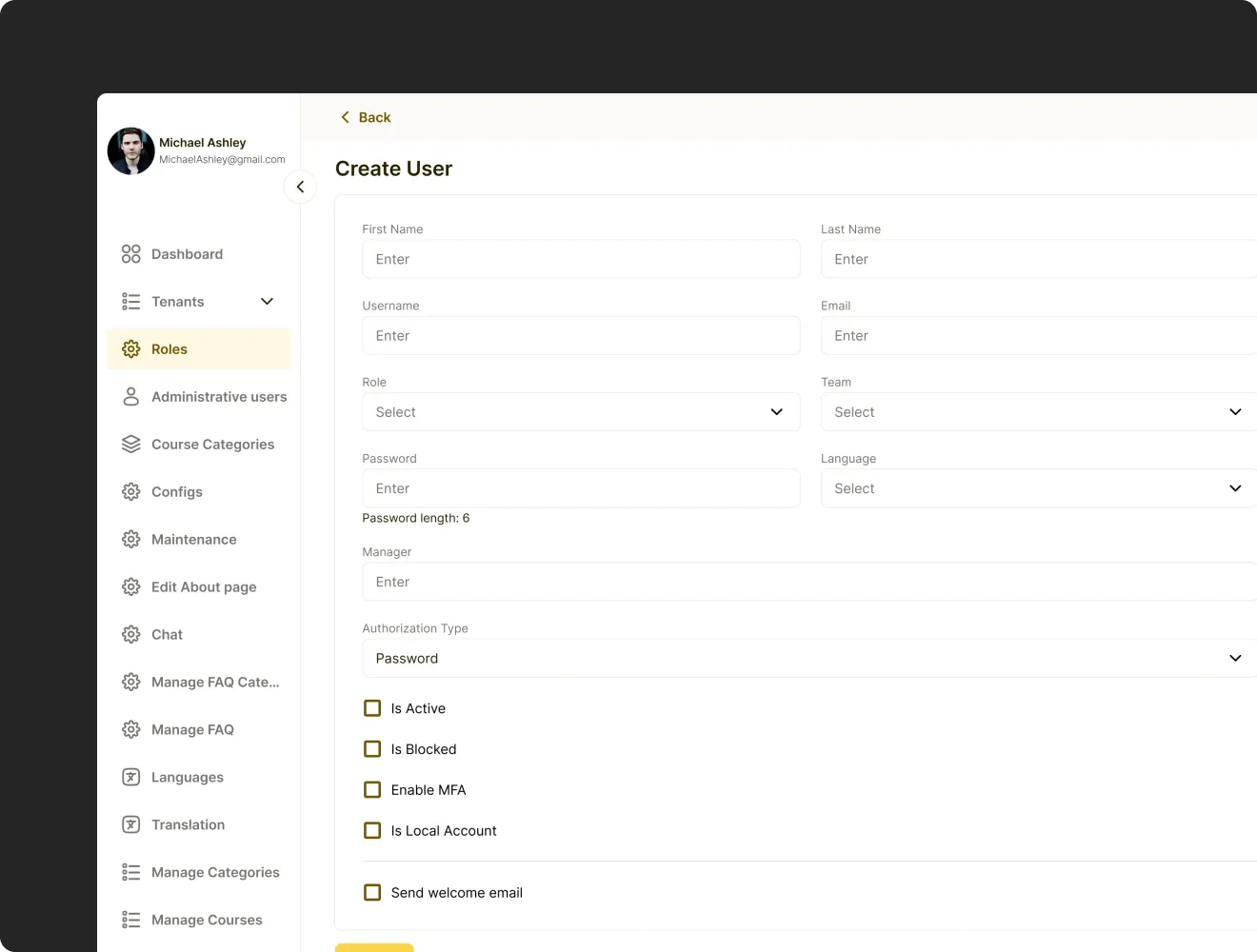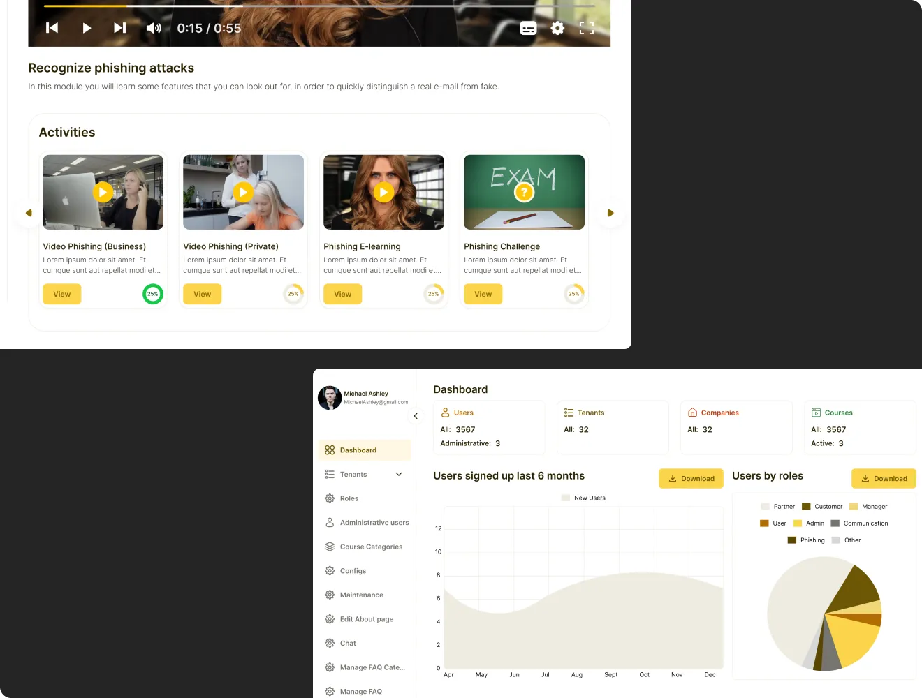 The platform was planned to be scaled, so we designed the LMS around multi-tenancy from day one. Global, tenant, and company contexts ensured strict data isolation, flexible branding, and independent configurations for every customer.