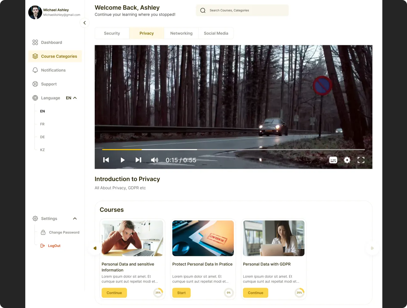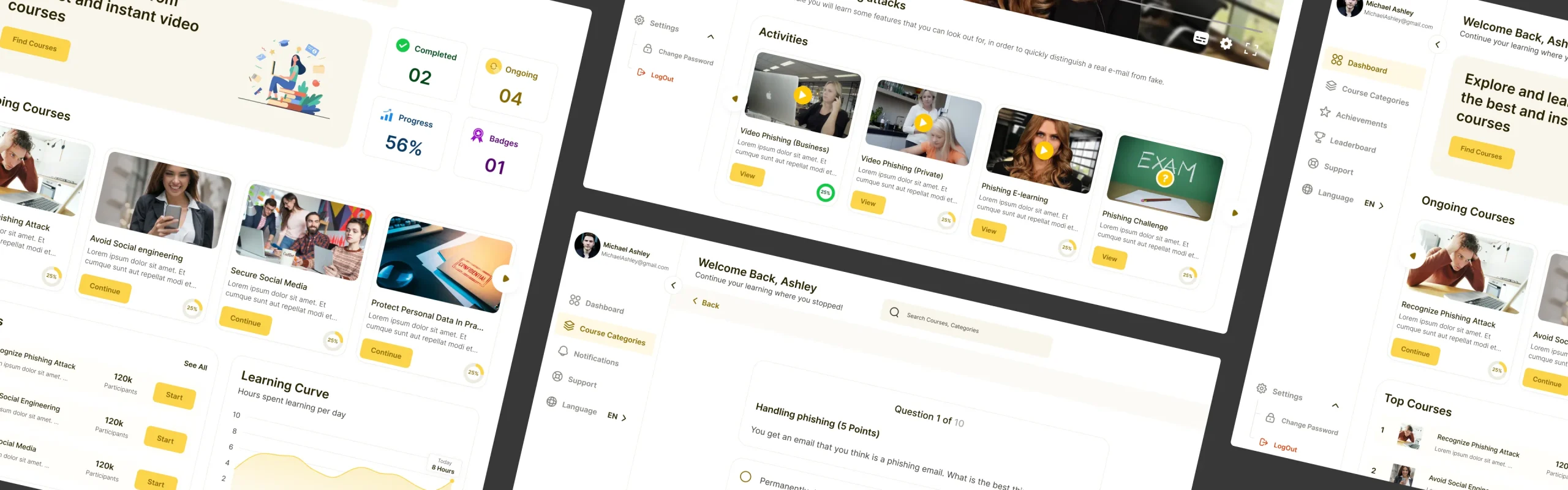We assessed Cyber Inc.’s goals and analyzed existing LMS platforms, like Moodle or IOMAD. It was clear that an off-the-shelf solution would limit the product long term, so we aligned on building the LMS from scratch.