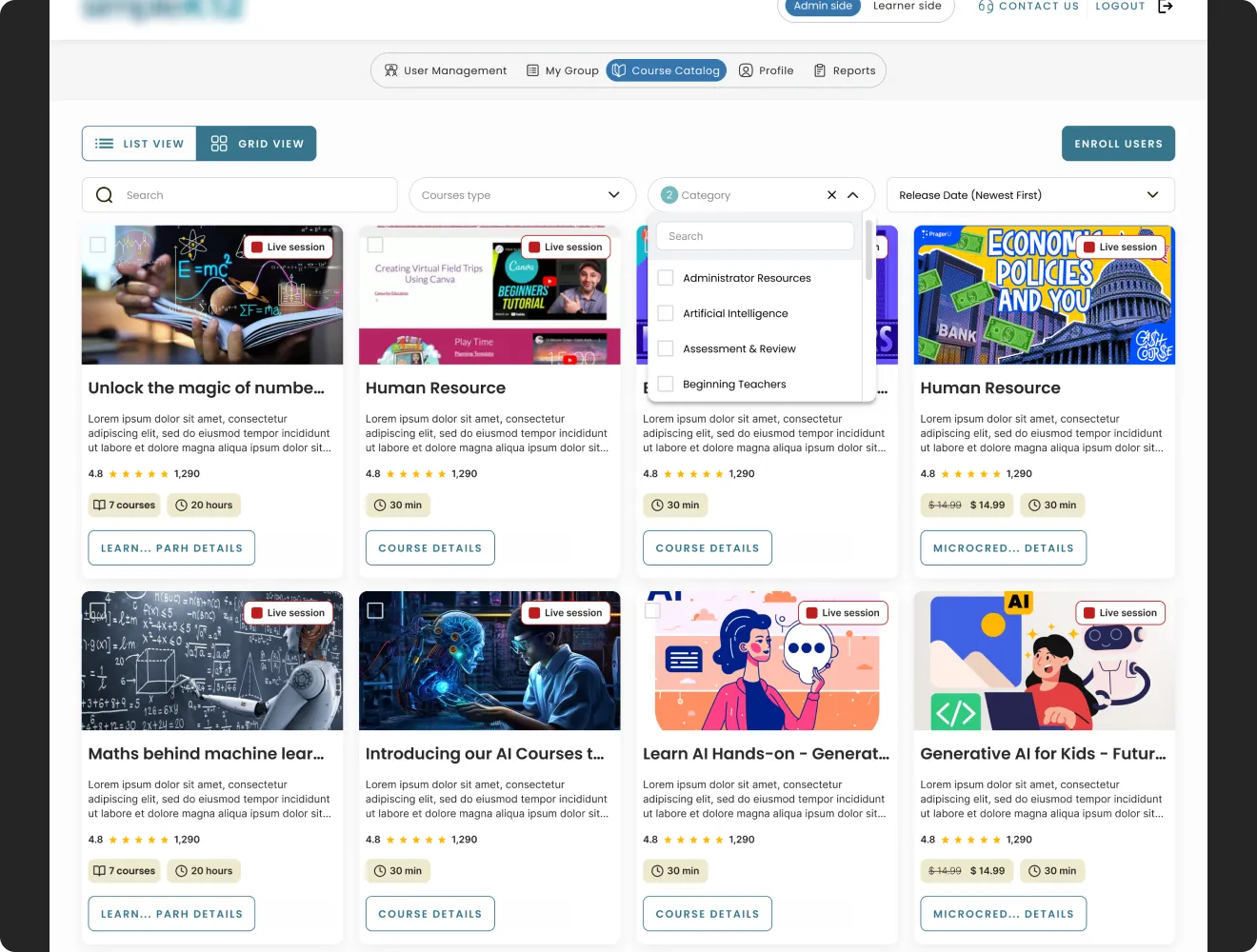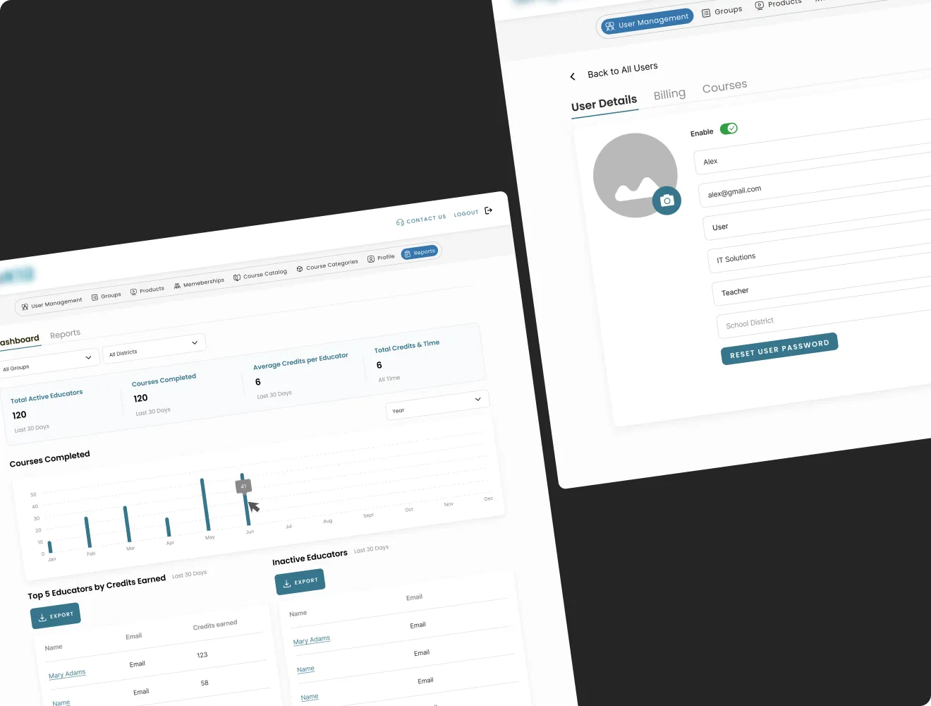 Registration, enrollment, progress, and subscriptions need to be managed in one place as user count grows.