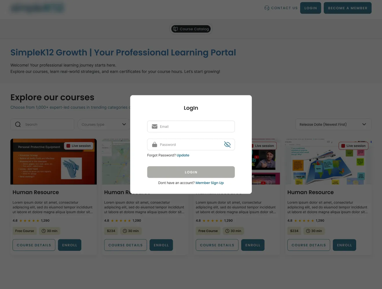 A custom user portal that connects to LearnUpon and internal systems of Teachers of Tomorrow